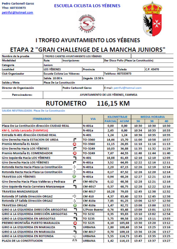 La Etapa 2 – “I Trofeo Ayuntamiento de Los Yébenes” se celebrará el 19 de abril de 2026 a las 10:30 h, con salida y meta en la Plaza de la Constitución de Los Yébenes.