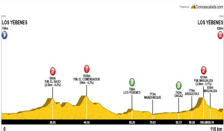 Con un recorrido total de 116,5 km, esta jornada de la Challenge de La Mancha ofrecerá un trazado exigente y atractivo por la provincia de Toledo, atravesando las localidades de Manzaneque, Orgaz, Arisgotas y Marjaliza, antes de regresar a Los Yébenes para la llegada final.